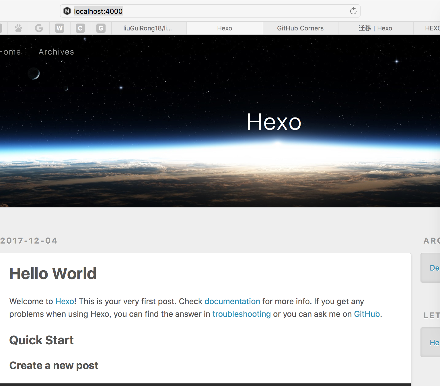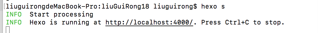 - hexo s #开启预览访问端口(默认端口4000,’ctrl + c’关闭server)