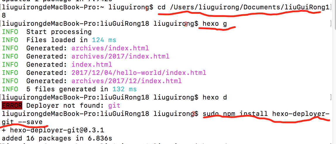 Node和Git都安装好后,开始安装 Hexo可执行如下命令安装hexo: